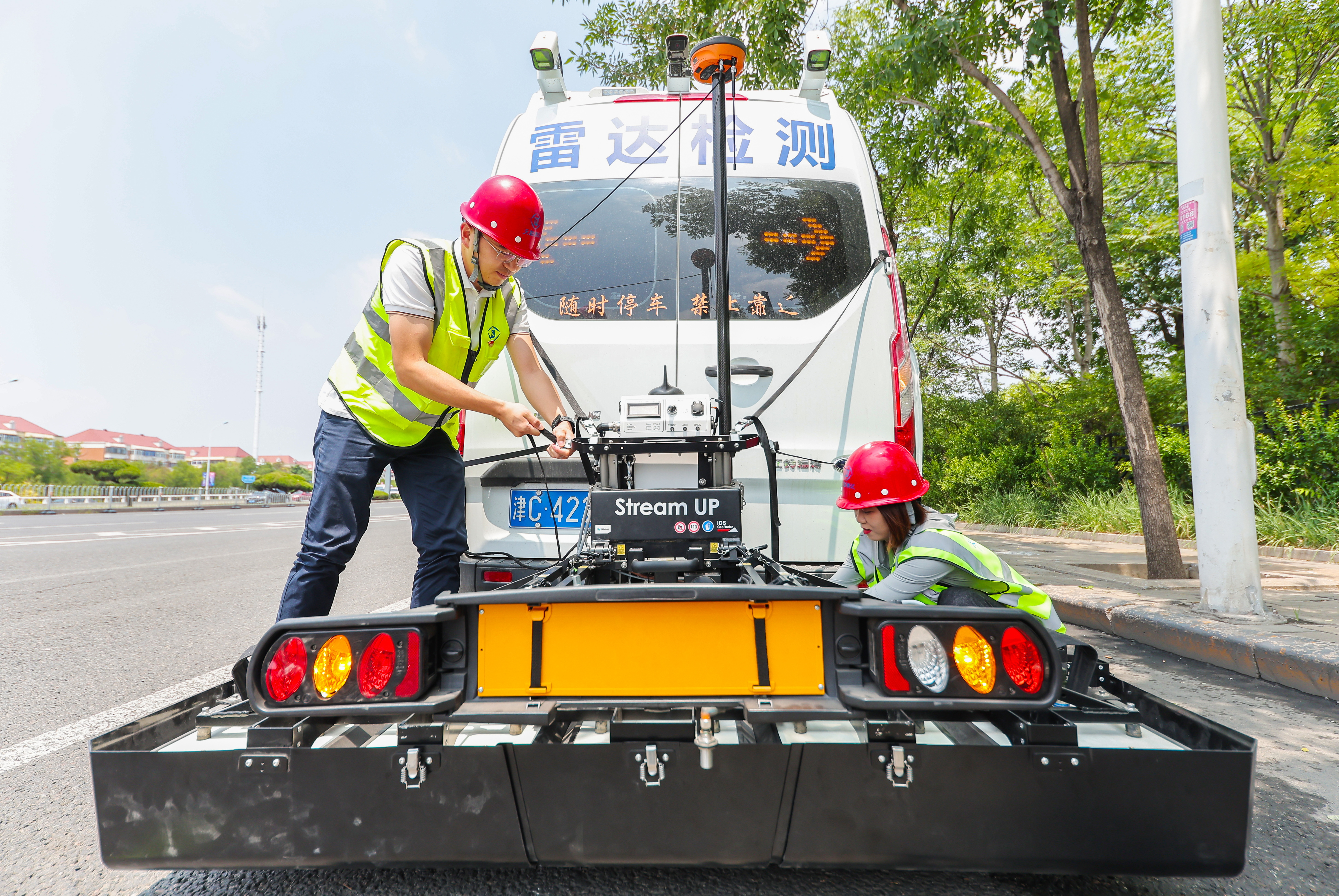 门路病害检测事情如同对门路做“CT”,提前预警门路下方可能保存的宁静隐患,尊龙凯时集团的物探团队运用了国际最先进的车载三维雷达检测设备和自主研发的“尊龙凯时物探云地下空间三维成像系统”的数据解译软件,对门路下方进行探测。